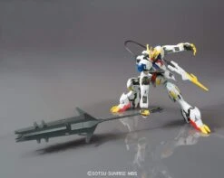From Gundam Iron-Blooded Orphans comes a ferocious repaired form of Gundam Barbatos Lupus that has been created as a result of the intense damage from fighting the Mobile Armor Hashmal. Its massive arms that reflect its pilot’s feral nature of combat have been recreated along with razor tipped claws on the hands and Hashmal’s tail weapon that can extend from the back with the use of a wire. Also includes forearm compartments that open and close to reveal sub-arms for grasping additional weapons from the various IBO MS Option Sets. The largest mace for Barbatos has been included and includes retracting gimmick to store on rear skirt armor. Runner x5, sticker, instruction manual.