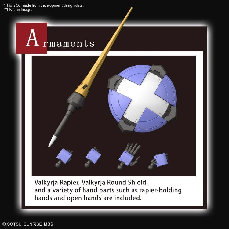From Mobile Suit Gundam Iron-Blooded Orphans G comes a game-original aircraft! Valkyrie Frame Three-dimensional Sigrún of the aircraft. Comes with special weapons such as Valkyrie Rapier and Valkyrie Round Shield. Comes with hand parts such as handles and flat hands for rapiers.