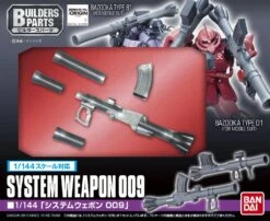 The set includes a beam rifle, 2 knives, 2 beam sabers, an expanding shield, and interchangeable hands.