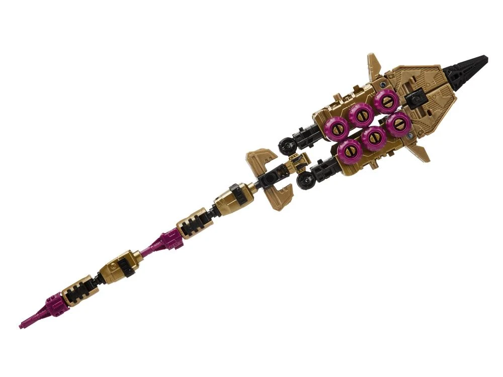 This special edition WFC-GS22 Black Roritchi figure features a gold deco inspired by the Fasttrack Headmaster redeco included with the 1988 Super-God Masterforce BlackZarak.