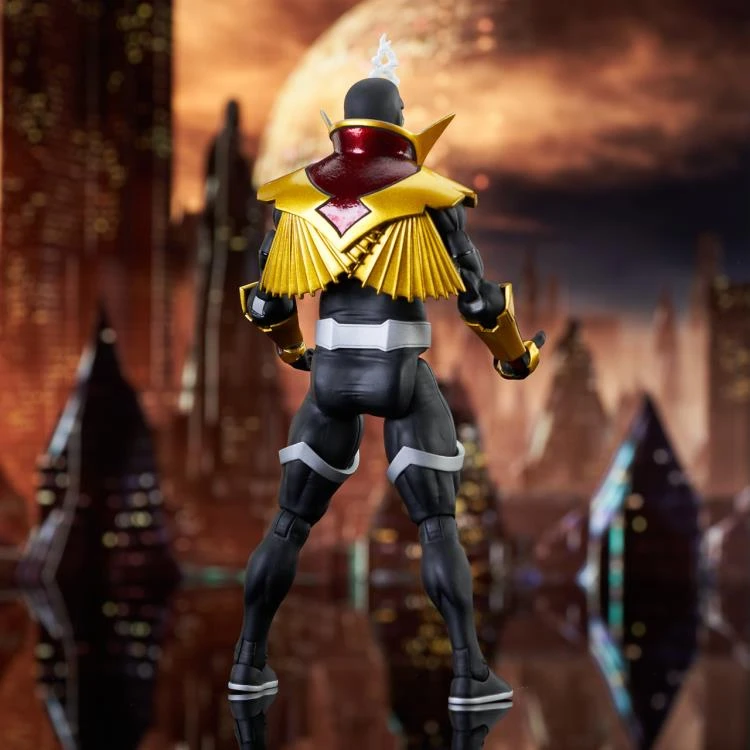 As seen in the Secret Invasion comic: Illuminati beware! Your ranks have been infiltrated by the Skrulls, and this Super Skrull has the powers of all of the Illuminati combined! Never before made as a toy, this green-skinned Skrull comes dressed in an Illuminati-inspired outfit, and includes an interchangeable masked head, as well as interchangeable hands and a devastating Black Bolt sonic attack piece! Standing approximately 7″ tall and featuring 16 points of articulation, this collector’s action figure comes in Select packaging, with side panel artwork for shelf display. Designed by Eamon O’Donoghue and sculpted by Gentle Giant Studios, don’t miss out and order yours today!